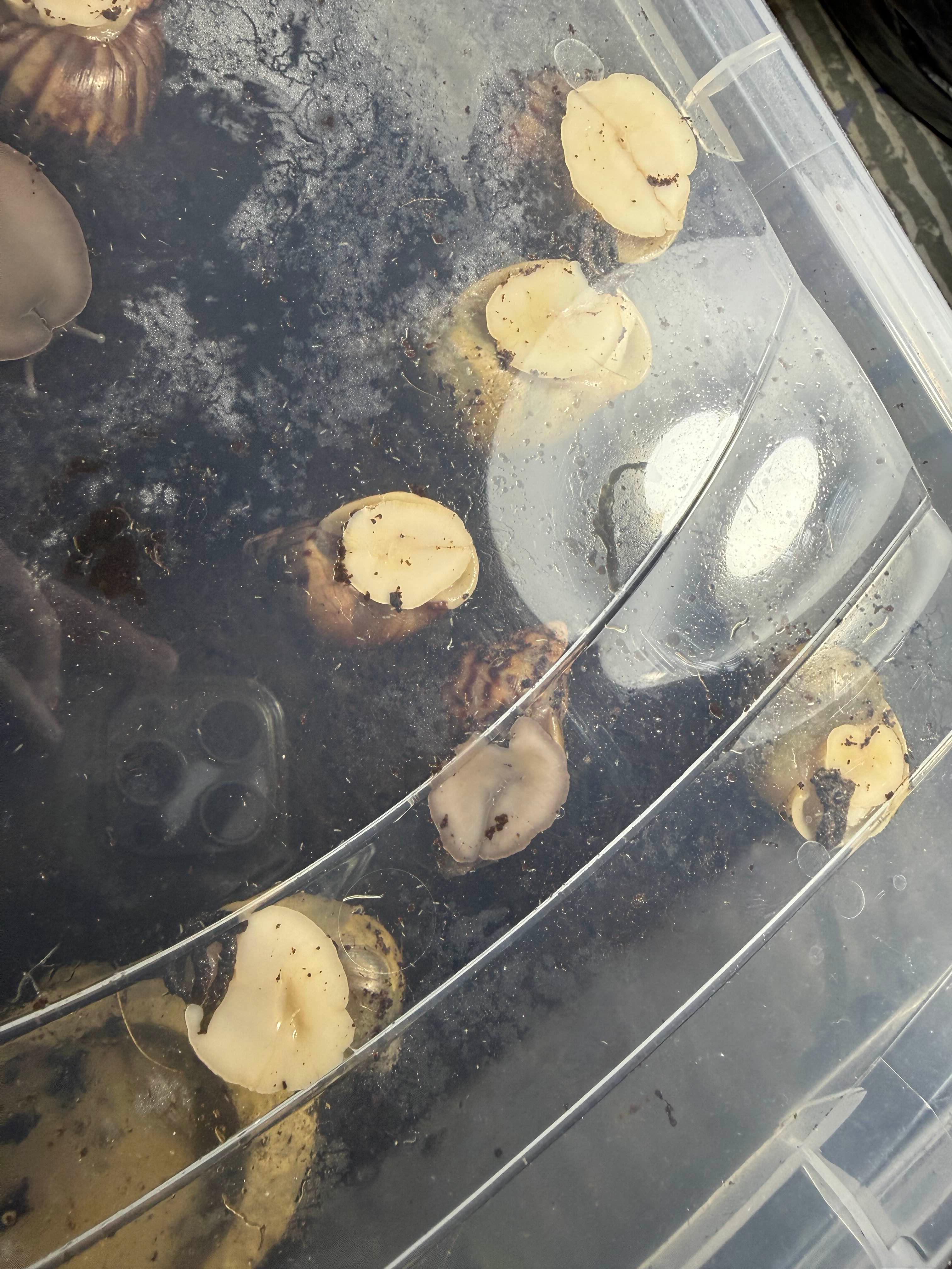 흑와도 몆마리도 보이고 잘붙어있는 달팽이